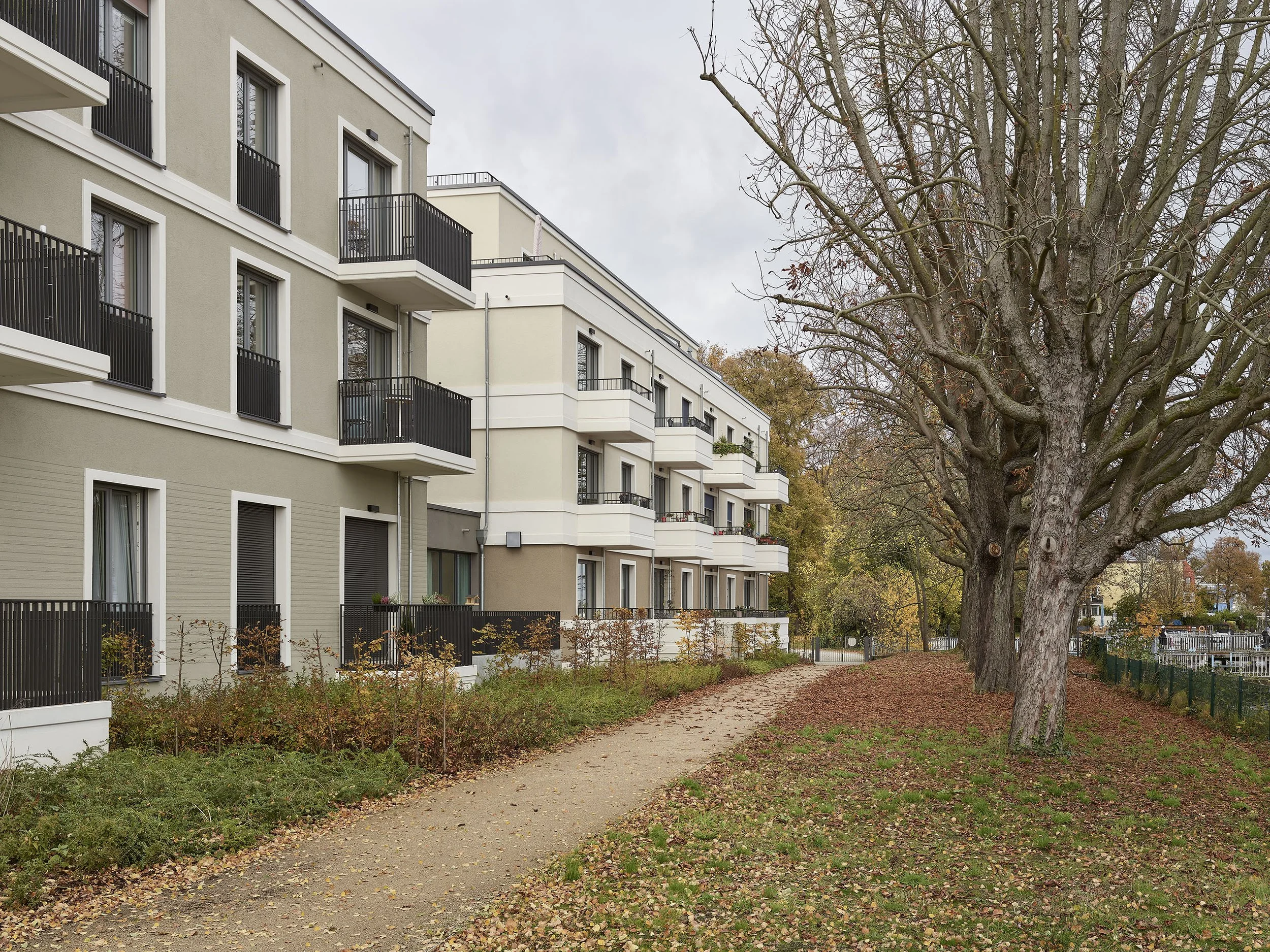 Unter Erhalt des historischen Ballsaals und Teilerhalt des ehemaligen Gesellschaftshauses Grünau aus dem 19. Jh., entstand auf dem Grundstück an der Dahme eine moderne Seniorenanlage mit barrierefreien Servicewohnungen.
